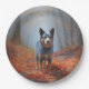Blue Heeler in Autumn Leaves Fall Inspire Paper Plate