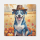 Blue Heeler In Autumn Leaves Thanksgiving Art Magnet