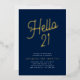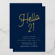Make your luxury 21st birthday party stand out with these unique and custom designed invitations. These invites feature elegant gold foil on a classic blue background, perfect for any chic birthday celebration. Make a lasting impression on your guests with these stylish and sophisticated Golden Script Hello 21 birthday party foil invitations.