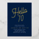 Make your luxury 70th birthday party stand out with these unique and custom designed invitations. These invites feature elegant gold foil on a classic blue background, perfect for any chic birthday celebration. Make a lasting impression on your guests with these stylish and sophisticated Golden Script Hello 70 birthday party foil invitations.