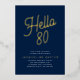 Make your luxury 80th birthday party stand out with these unique and custom designed invitations. These invites feature elegant gold foil on a classic blue background, perfect for any chic birthday celebration. Make a lasting impression on your guests with these stylish and sophisticated Golden Script Hello 80 birthday party foil invitations.