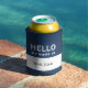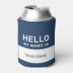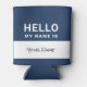 Easily personalize this Custom Blue Hello my name is | Personalized can cooler. A simple business design in navy blue and white colors fully customizable in front and back sizes, handwritten cute and modern fonts and a professional and clear look. No minimum order.
