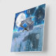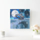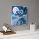 Blue Heron, Full Moon & Waterfall Fantasy Scene Square Wall Clock