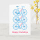 Three cyan blue bikes with red and white candy cane frames. Happy Holidays.