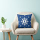 Personalised monogram Christmas pillow. Custom blue pillow with white snowflakes. Large snowflake in centre of cushion where you can add your initial. Unique Christmas home decor accessory pillow - customised with your monogram.