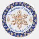 Homemade Christmas Cookies classic round sticker with blue gingerbread cookies pattern background and snowflake cookie in the centre. Perfect sticker for your homemade baked goods this holiday season. Simply add your name to the label and also what type of cookies at the top.