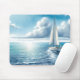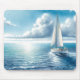 A serene coastal watercolor portraying a solitary sailboat gliding across calm blue waters beneath expansive, cloud-filled skies. Soft gradients of aqua, cerulean, and sunlit white create a tranquil rhythm, while gentle reflections ripple across the sea, evoking quiet movement and open possibility. The composition feels airy and contemplative, balancing vast sky and water with a sense of peaceful journey and timeless escape. This artwork captures a soothing coastal mood rooted in calm, freedom, and light, perfect for those drawn to breezy horizons and reflective moments by the sea. AI generated artwork.