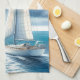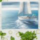 Blue Horizon Solitary Sailboat Tea Towel