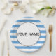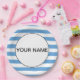 Cool, blue and white striped pattern and a name template. Click personalise and add your name.