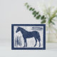 Blue Horse - Navy Blue Woodcut Style Postcard