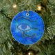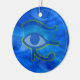 Ceramic ornament with Eye of Horus textured blue with gold outline abstract design. This design features the Horus Eye in blue tones on faded Horus Eyes in the background.