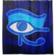 Shower curtain with Eye Of Horus, the symbol of protection in Ancient Egypt textured design. This metal print design features the Horus Eye in blue tones on faded Horus Eyes in the background.