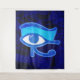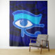Tapestry with Eye Of Horus, the symbol of protection in Ancient Egypt textured design. This tapestry design features the Horus Eye in blue tones on faded Horus Eyes in the background.