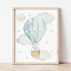 Blue Hot Air Balloon, Animals, Bunny, Boy Nursery Poster