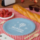 Super cute baby's first birthday design perfect for celebrating your baby boy's first birthday! Design features a medium blue background on the left hand side. Over the blue background are white silhouettes of floating hot air balloons. Below the hot air balloons is customisable text in white font where you can add the birthday boy's name and his age. This adorable birthday party plate coordinated perfectly with our Blue Hot Air Balloons Baby's First Birthday Photo invitations.