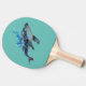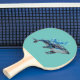 traditional watercolor artwork of a big blue coloured humpback whale on a ping pong paddle