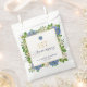 The Blue Hydrangea 1st Year Paper Anniversary Party Favour Bag is a beautiful watercolor with blue hydrangeas, greenery, and a digital gold effect. It is a beautiful floral idea for a spring or summer anniversary party. Beautiful personalised wedding favour paper bags! You can personalise by selecting "Personalise this template," or if you want to customise this design even further (background colour, font, etc.), please select "Edit using the Design tool."
