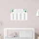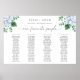 This seating chart poster features a blue hydrangea floral design and 4 tables layout. The script text heading is an image that cannot be edited. The heading image can be resized to fit any poster size. All of the other text is fully editable. For more advanced customization of this design, simply select the "Customize It" button above.