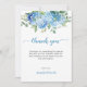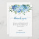 Watercolor Blue Hydrangea Baby Shower Thank You Card.