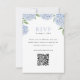 Blue Hydrangea Blooms QR Code Reply Vertical RSVP Card
