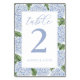 This beautiful floral table number card features watercolor blue hydrangea flowers and your custom text on both sides of the card. Use the template to fill in your information. The "Customise further" feature can be used to change the font (size, style, colour), add more lines of text or change the layout.