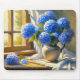 Blue hydrangea flower bouquet on a lace in Monet style