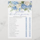 Blue Hydrangea Bride or Groom Bridal Shower Game Flyer