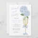 Blue Hydrangea Brunch and Bubbly Gold Champagne Invitation