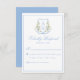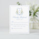 Blue Hydrangea Crest Monogram, RSVP cards is vintage-inspired soft blue and white design that's perfect for a garden or coastal-themed wedding. The cards features an elegant light blue color typography design style mix of script and bold type. Solid light blue backing with a matching envelope that has blue and white hydrangea details to tie it all together. You can easily customize this design with your details. Happy planning!
