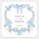 Blue Hydrangea Crest Watercolor Wedding Square Sticker