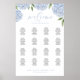 This simple design features a simple blue hydrangea frame. Decrease the text size to add more names or tables.