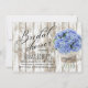 Blue Hydrangea Floral Jar Rustic White Wood Bridal Shower Invitations.