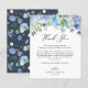 Send thanks with this customisable thank you card. It features a watercolour garland of blue hydrangea flowers and roses, ivory roses, and greenery. Personalise these hydrangea thank you cards with your message, name, and date. These floral thank you cards are perfect for weddings, baby showers, bridal showers, birthdays, and so much more. Matching items are available.