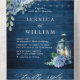 Blue Hydrangea Lantern Wood Wedding QR code All In One Invitation