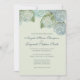Blue hydrangea floral bouquet with bright green leaves, painted and detailed. Garden, botanical, nature print. with a sage green background
