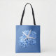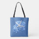 Beach wedding gift bags with blue hydrangea flowers and starfish design. From the Seaside Garden design line, this white bag has a big, blue floral design with a beach theme. Customise with a line of text at the top, with names and date, or bridesmaid name. Realistic hydrangea flowers have a white sea star stuck into the petals which makes a beautiful design for any sea-themed wedding. This large tote can be given to members of the bridal party, or to guests attending a destination celebration.