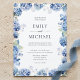 Blue Hydrangea Watercolor Coastal Wedding Invitation