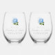 A fun gift for the newlyweds on the big day or ahead of time at a bridal or couple's shower, these stemless wine glasses feature a dusty blue hydrangea blossom, wedding date and name text.