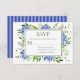 This charming and elegant RSVP card with beautiful, wispy, multi-hued blue hydrangeas and stunning green foliage and coordinating blue striped back is perfect for enclosing with your invitations. Your guests will find it easy to respond to your engagement party. You can easily make it your own by selecting Personalise this template and typing in your response deadline. In seconds you will see your unique and stunning RSVP cards!
