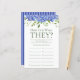 This lovely blue hydrangeas How Old Were They? bridal shower game sheet is elegant and charming - perfect for any garden, botanical, rustic, romantic, floral, formal or vintage wedding. Its exquisite combination of graceful multi-hued blue hydrangeas and wispy greenery is flowy, delicate, and beautiful. This fun and easy game is sure to bring lots of laughter to any bridal shower! Have family and friends send you pictures of the bride and groom at all different ages and have them printed. Number them and set them near these game sheets. Simply give a sheet to each guest (don't forget the pens) and let the competition begin! You'll be amazed at how many people really know the ages of the bride and groom. In seconds you can see how your game sheet will look. Simply select Personalise this Template and type in the names of the bride and groom.