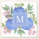 Blue Hydrangeas Modern Bouquet Custom Monogram Paper Coaster