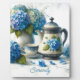 Here is a serenity plaque with blue hydrangeas and coffee accents. This decorative plaque radiates peaceful charm, centred around the word Serenity in elegant script. Surrounding the text are lush clusters of blue hydrangeas in a white vase, their soft petals rendered in watercolor hues that evoke calm and renewal. Nestled beside the blooms is a vintage-style coffee pot, also adorned with matching hydrangea motifs and a cup and saucer calling you to take a break and have a cup of coffee and calm your mind. The word 'Serenity' can be changed to any that suits you.