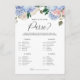 What's in your purse? Blue floral shower game card featuring watercolor illustrations of blue hydrangeas, white roses, pink roses and greenery. Personalise by adding names, event and date. This floral purse game card is perfect for baby showers, bridal showers and wedding parties.