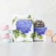 Hydrangea flowers scattered in a beautiful all-over print painted from flowers grown in the artist's own garden.