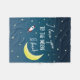 Soft baby blanket with the script "I love you to the moon and back", featuring my rocket ship, moon and stars illustration Outer space in an indigo gradient sky. Perfect gift for the new baby and the new parents.