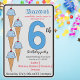 Blue Ice Cream Cones 6th Birthday Party Kids Invitation