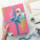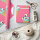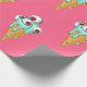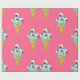 Blue ice cream with eyes. Pink background. Seamles Wrapping Paper