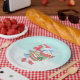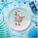 A winter festive Penguin joyfully slides across the ice as delicate snowflakes fall against a minty blue sky! Original illustration by artist, Noël Snow.