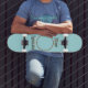 PHOTO OF A BLUE IGUANA ADORNS THIS DISTINCTIVE SKATEBOARD DECK. CUSTOMIZING IS POSSIBLE.