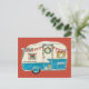 Blue Illustrated Vintage Trailer Holiday Postcard